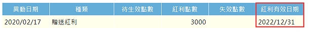 【會員專區】→【紅利異動記錄】紅利使用明細表中會顯示『紅利有效日期』。